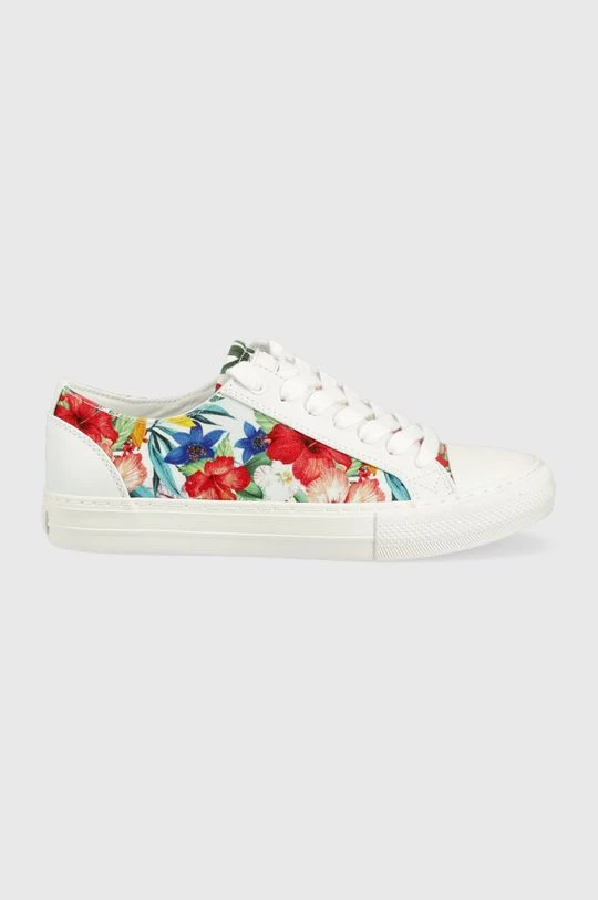 Πάνινα παπούτσια από τη συλλογή Guess. Μοντέλο από συνδυασμό υφασμένου υφάσματος και οικολογικού δέρματος.