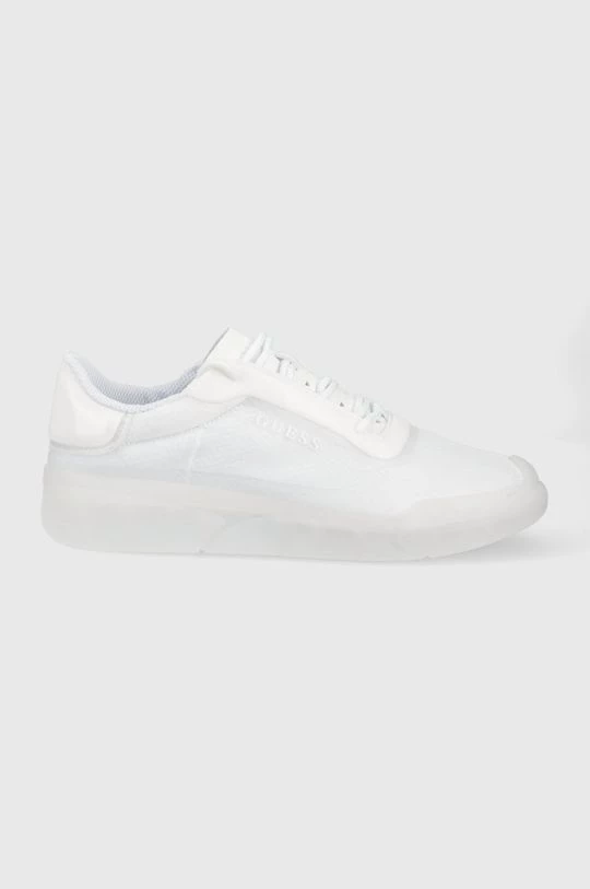 Υποδήματα από τη συλλογή Guess. Μοντέλο από συνδυασμό υφασμένου και συνθετικού υφάσματος.