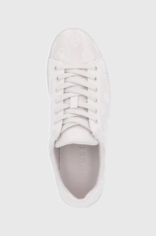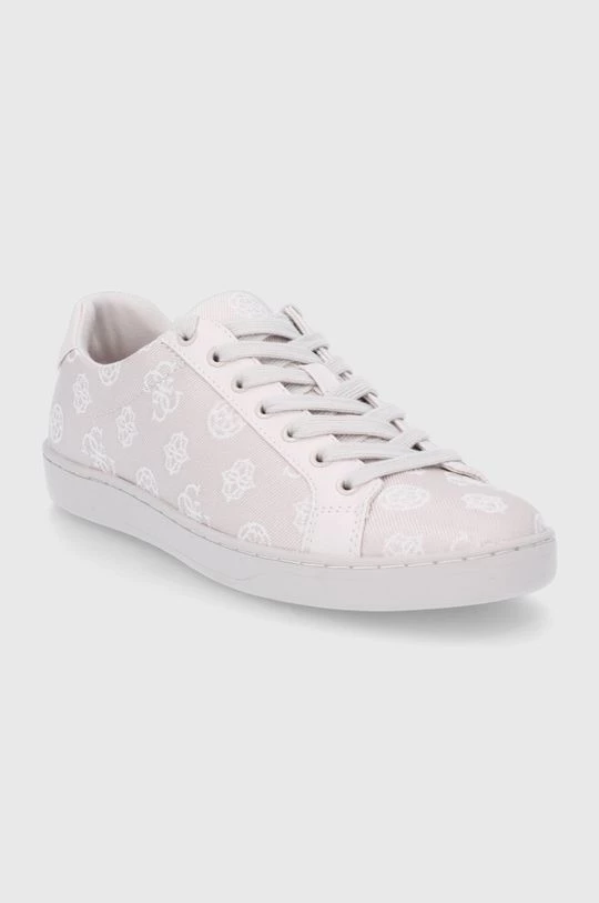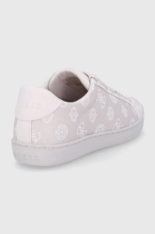 Υποδήματα από τη συλλογή Guess. Μοντέλο από συνδυασμό υφασμένου υφάσματος και οικολογικού δέρματος.